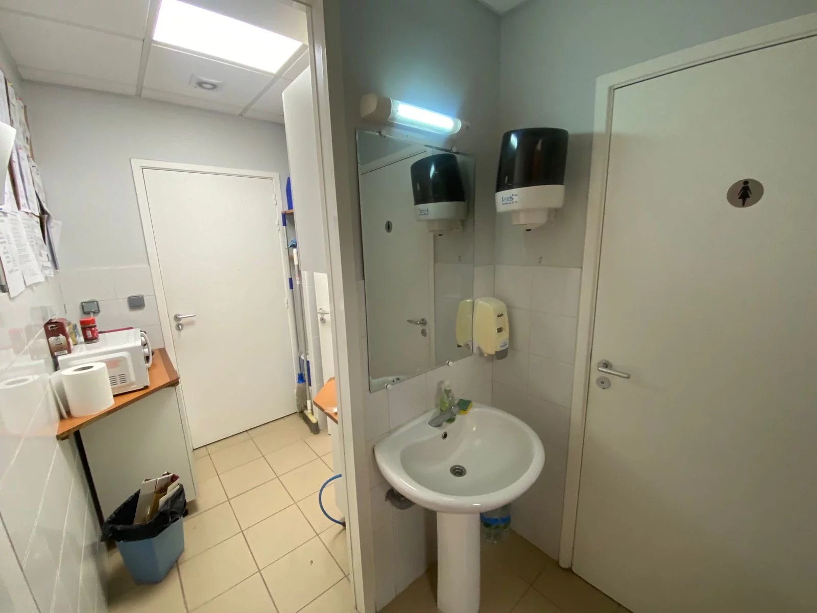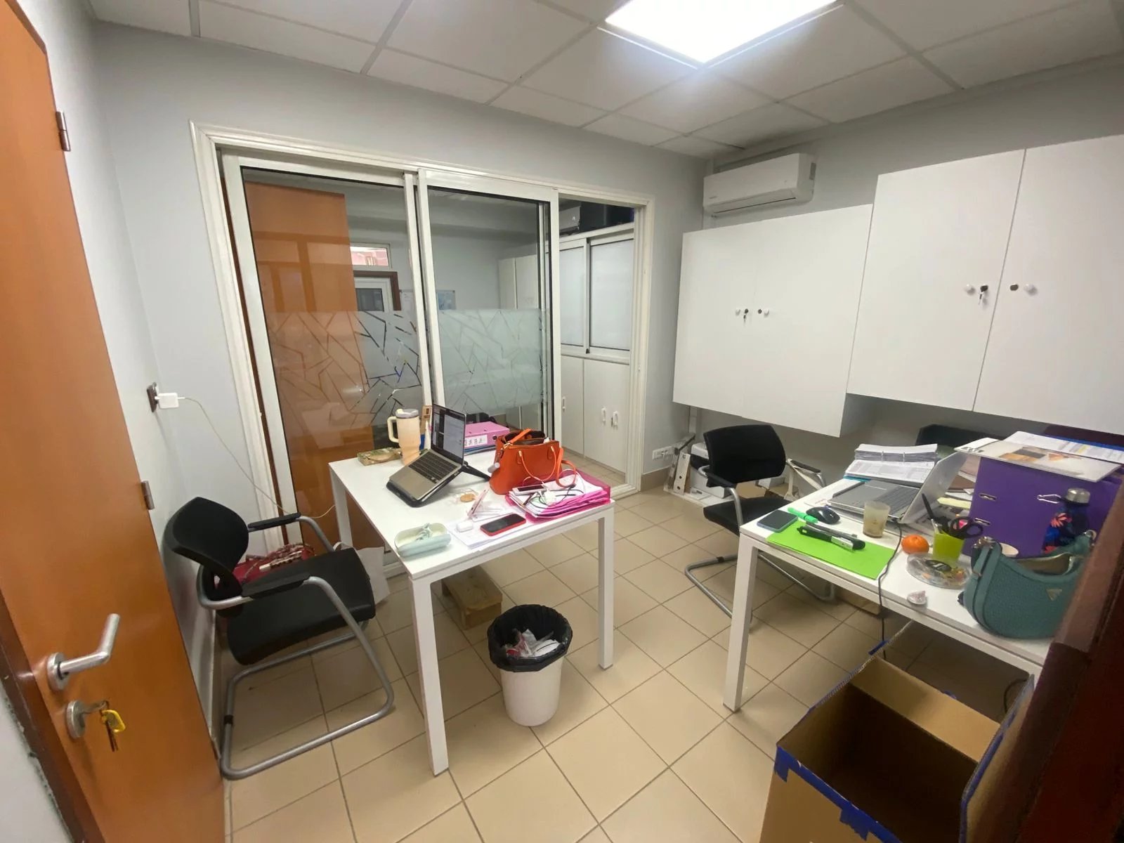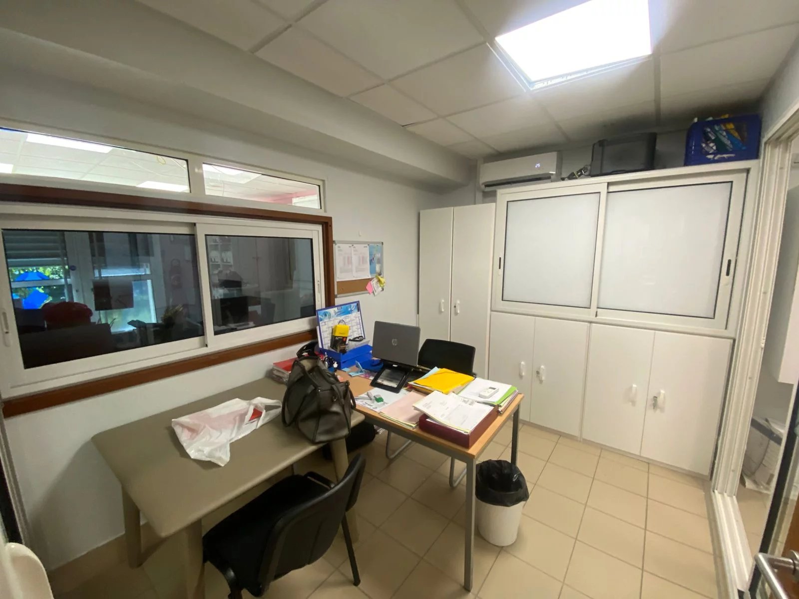 Placé au rez-de-chaussée d'un grand immeuble d'affaires, ce local de 115 m²sera parfait pour votre activité de bureau ou autre. 4 Places de parking réservées au personnel.