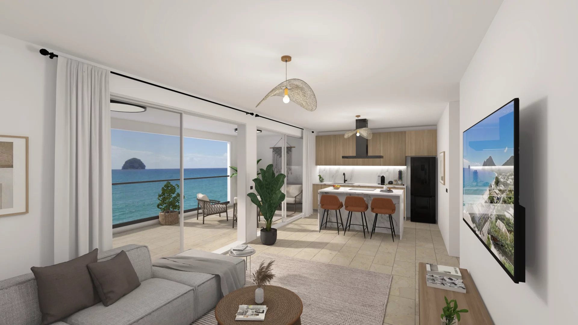 Résidence les pieds dans l'eau sur la plage du Diamant, 12 appartements de type 2 et de type 3 exceptionnels et exclusifs, bénéficiant d'une vue mer et rocher du Diamant à 180°, accès direct à la plage. Une opportunité unique en MARTINIQUE.