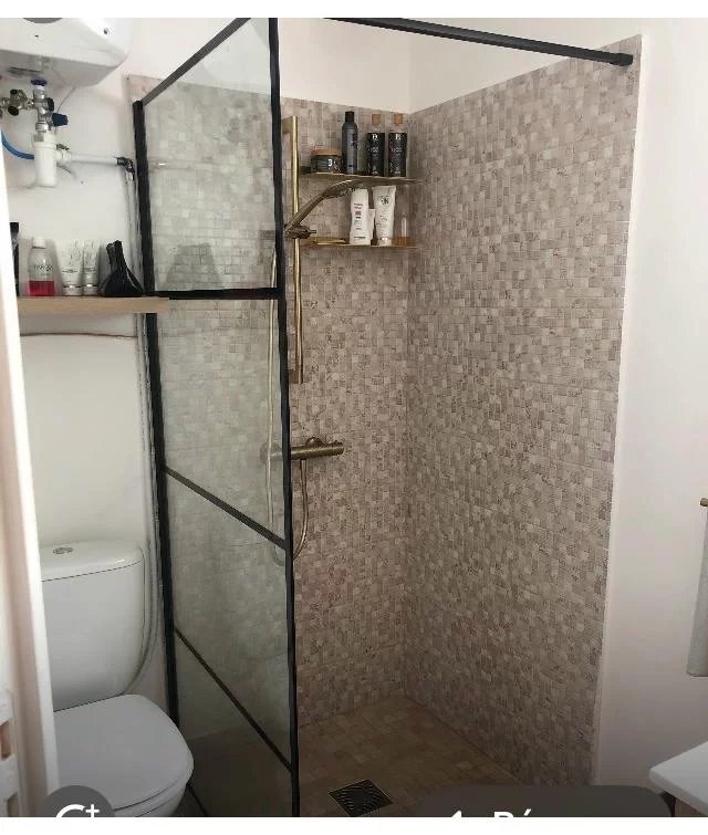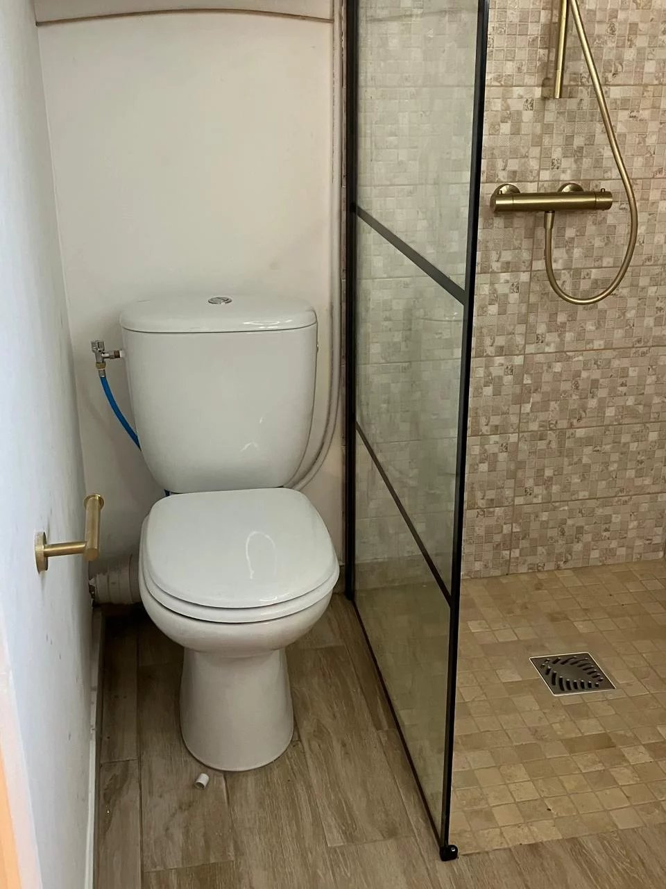 une salle d'eau avec WC, rénovée et fonctionnelle