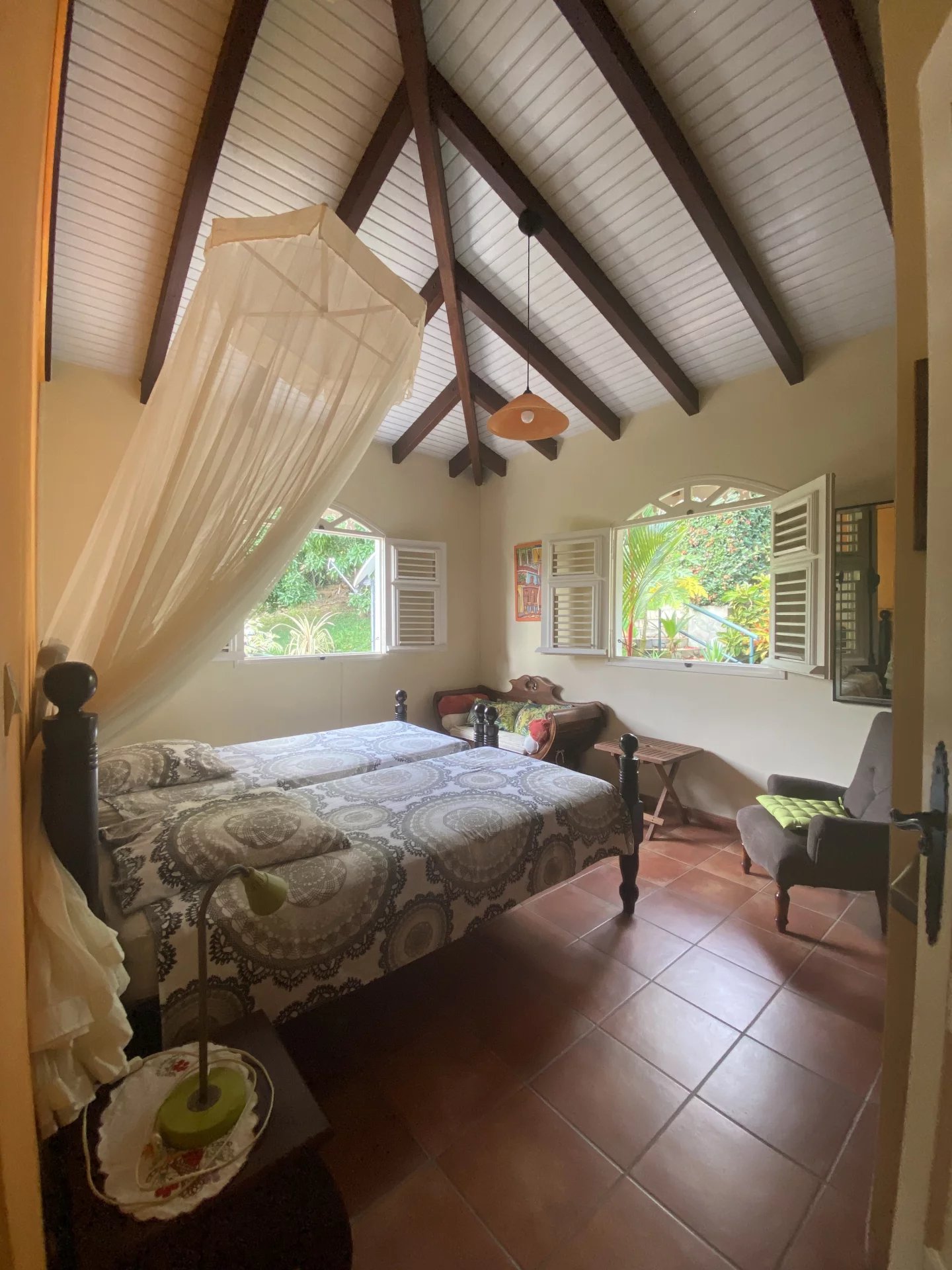 Construit avec des matériaux nobles (charpente en angélique, bois courbaril, toit en tuiles), ce bien offre de très beaux volumes, sans aucun travaux à prévoir.